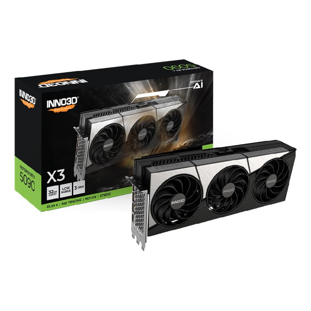 Buy Inno3D GeForce RTX 5090 X3 32GB OC graphics card for flagship gaming and extreme GPU power in the UK. N50903-32D7X-17593928. Available at rtx50series.co.uk.
