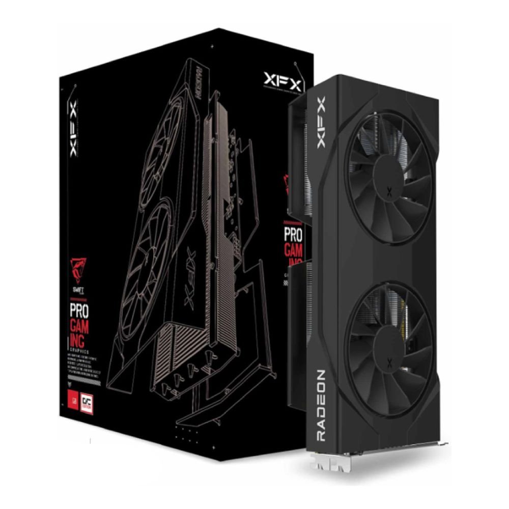 Get XFX Radeon RX 9060 XT SWIFT Gaming 8GB OC graphics card for efficient AMD gaming builds and smooth GPU performance in the UK. RX-96TSW8GBQ. Order at rtx50series.co.uk.