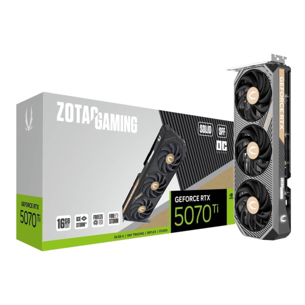 Choose ZOTAC GAMING GeForce RTX 5070 Ti SOLID SFF 16GB OC graphics card for high FPS gaming and compact GPU builds in the UK. ZT-B50710J3-10P. Buy from rtx50series.co.uk.
